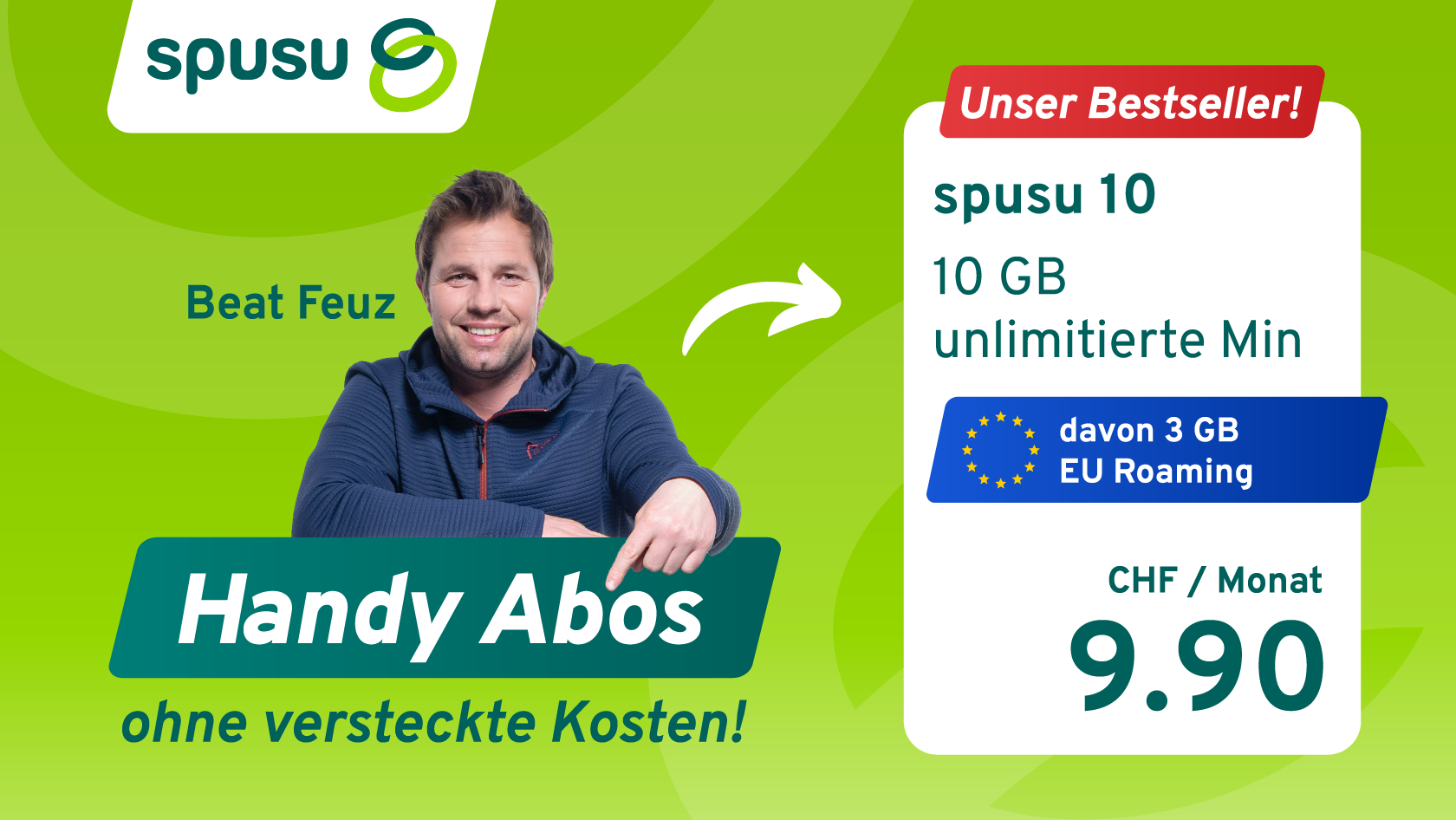 10 GB, unlimitierte Anrufe/SMS in CH & 3 GB EU-Roaming für nur CHF 9.90, keine Aktivierungsgebühr, keine Mindestvertragsdauer