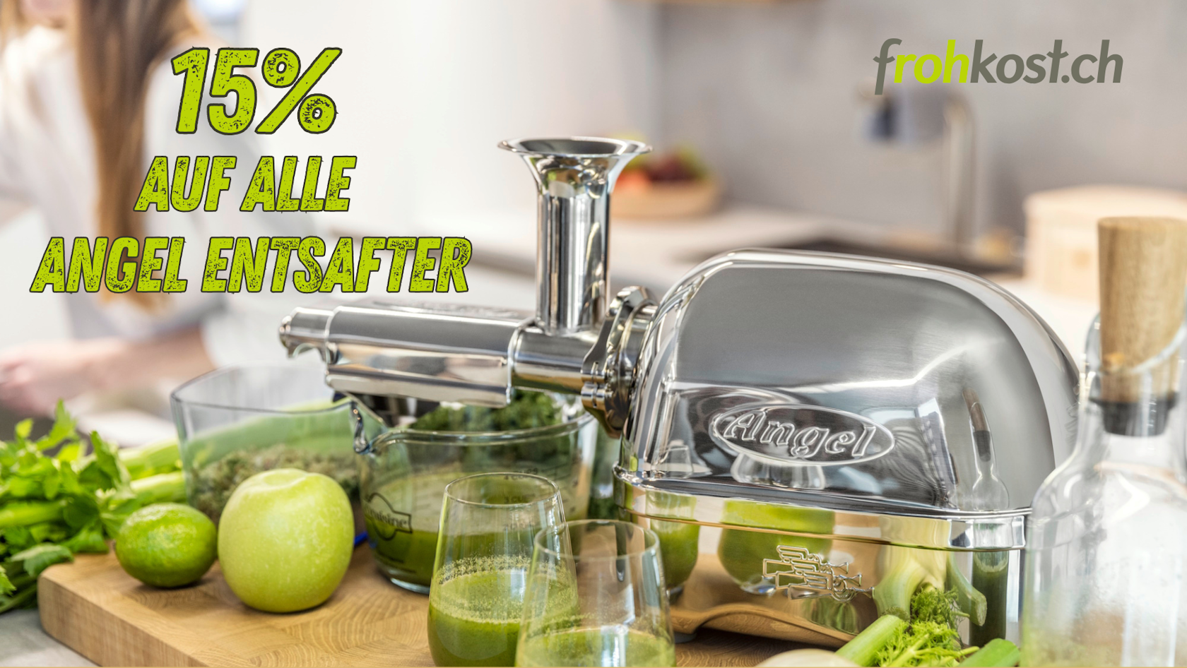 Black Friday bei frohkost.ch: 15% Rabatt auf alle Angel-Entsafter & Zubehör. Vom 28.11. bis zum 01.12.25!