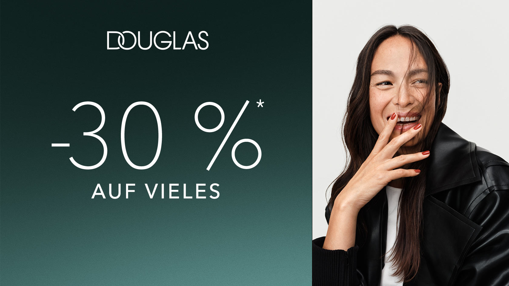 *Gültig vom 26.11. bis zum 01.12.2025 in allen Douglas-Filialen, auf douglas.ch und in der Douglas-App. Online ist der Rabatt bereits bei den angezeigten Produktpreisen berücksichtigt. Auch mit „Online“-Preis und „Point Rouge (roter Punkt)“ gekennzeichnete Artikel sind online bereits reduziert. In den Douglas-Filialen wird der Rabatt an der Kasse gewährt. Ausgenommen sind Produkte mit der Kennzeichnung „Douglas Partner“, Gutscheinkarten, die Douglas-Filiale in Landquart und alle Artikel der Marken Amouage, Anfas, Attar Collection, Baobab, Bond No. 9, Electimuss London, Goldfield & Banks, Molton Brown, Pana Dora Sweden, Thameen London, Tiziana Terenzi und Xerjoff. Nicht mit anderen Rabattaktionen kumulierbar.