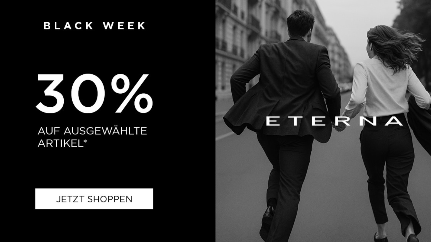 Gültig bis 01.12.2025 im ETERNA Onlineshop ab einem Bestellwert von CHF 29. Nur auf BLACK WEEK-Artikel. Nicht kombinierbar mit anderen Rabattaktionen.