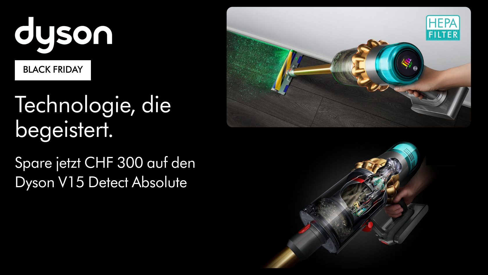 Dyson V15 Detect Absolute in Gold mit leistungsstarker Saugkraft. Jetzt inkl. CHF 300 Preisvorteil. Exklusiv erhältlich bei Dyson.ch.