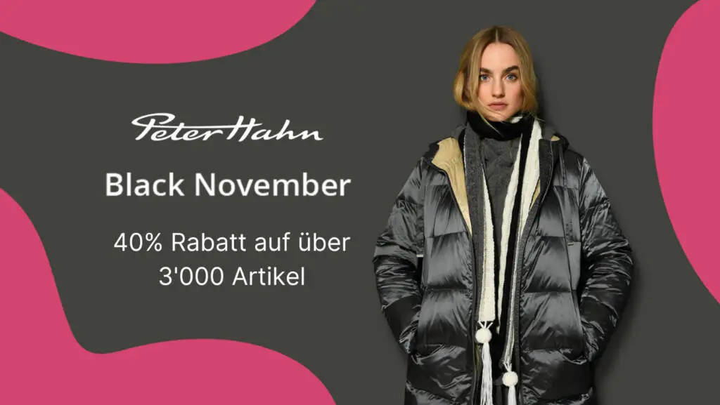Black November – 40% Rabatt auf über 3.000 Artikel + portofrei mit dem Kennwort Black22 bei PETER HAHN. Nur gültig auf Artikel der Rubrik Black November.