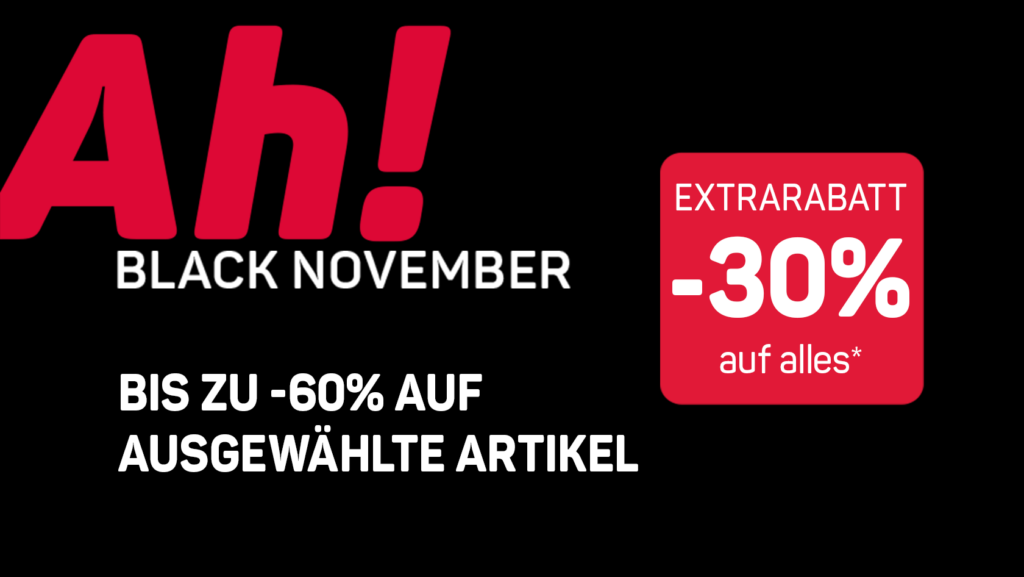 Black November bei Ackermann: 30% Rabatt auf alles*! Nur vom 16.11 – 30.11. Schnell zugreifen, shoppen und sparen!