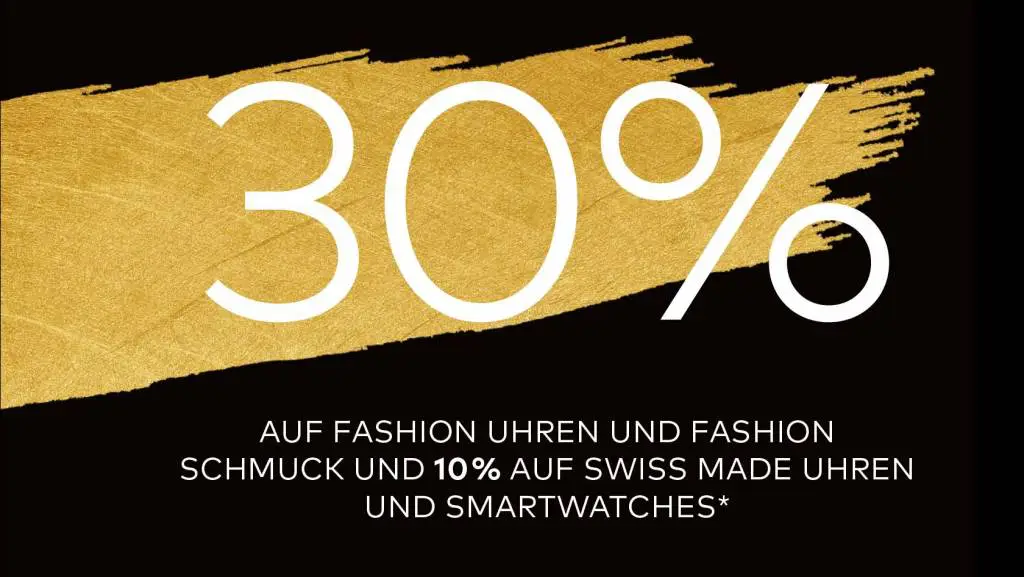30% Rabatt auf Fashion Uhren und Fashion Schmuck & 10% Rabatt auf Swiss Made Uhren und Smartwatches*