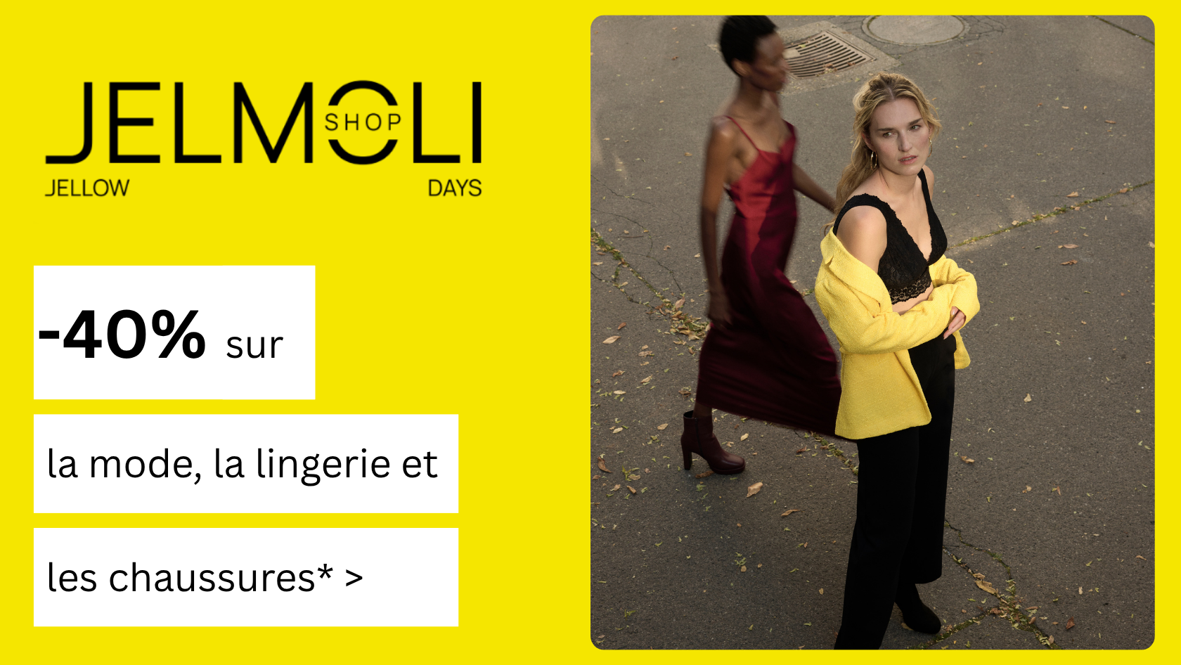 *Ce rabais ne s’applique pas à LSCN by Lascana, aux articles déjà réduits, aux deals du mois, aux services et aux commandes déjà passées. Pour plus d’informations, veuillez consulter le site jelmoli-shop.ch/rabais