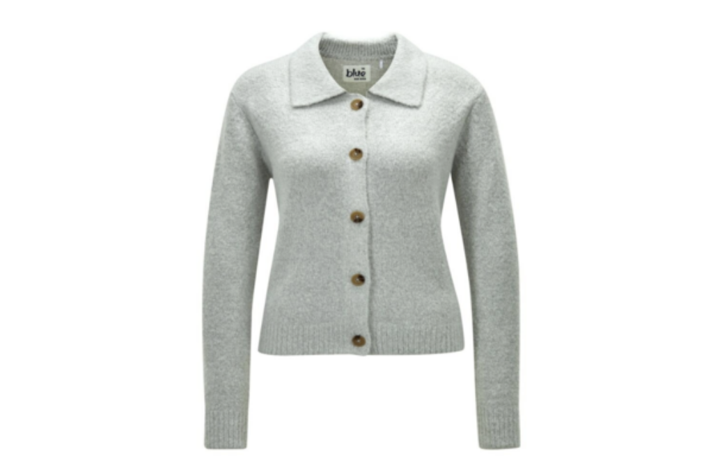 Les cardigans sont les héros de la saison froide. Ils offrent la juste dose de chaleur et sont tout simplement indispensables. Ce cardigan gris avec col polo et cinq boutons flatte également la silhouette. Pour un ajustement parfait et une plus grande élasticité, chaque partie du cardigan a été tricotée individuellement avec des mailles serrées sur les bords.
