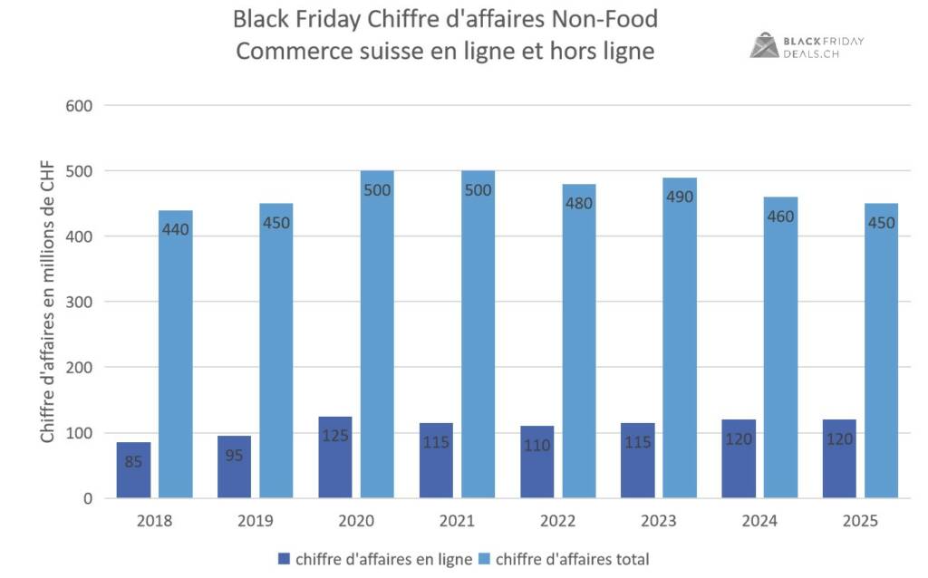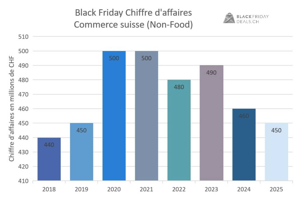 Ce recul s’explique principalement par la stratégie désormais courante de nombreux commerçants, qui consiste à déployer leurs actions promotionnelles sur plusieurs jours, voire plusieurs semaines, plutôt que de se concentrer sur les 24 heures du Black Friday. À cela s’ajoutent l’incertitude économique persistante et la force du franc suisse, qui ont entraîné une baisse du chiffre d’affaires.