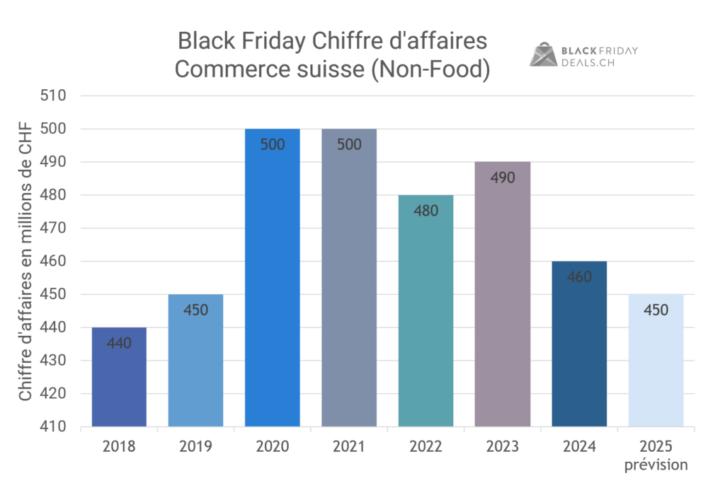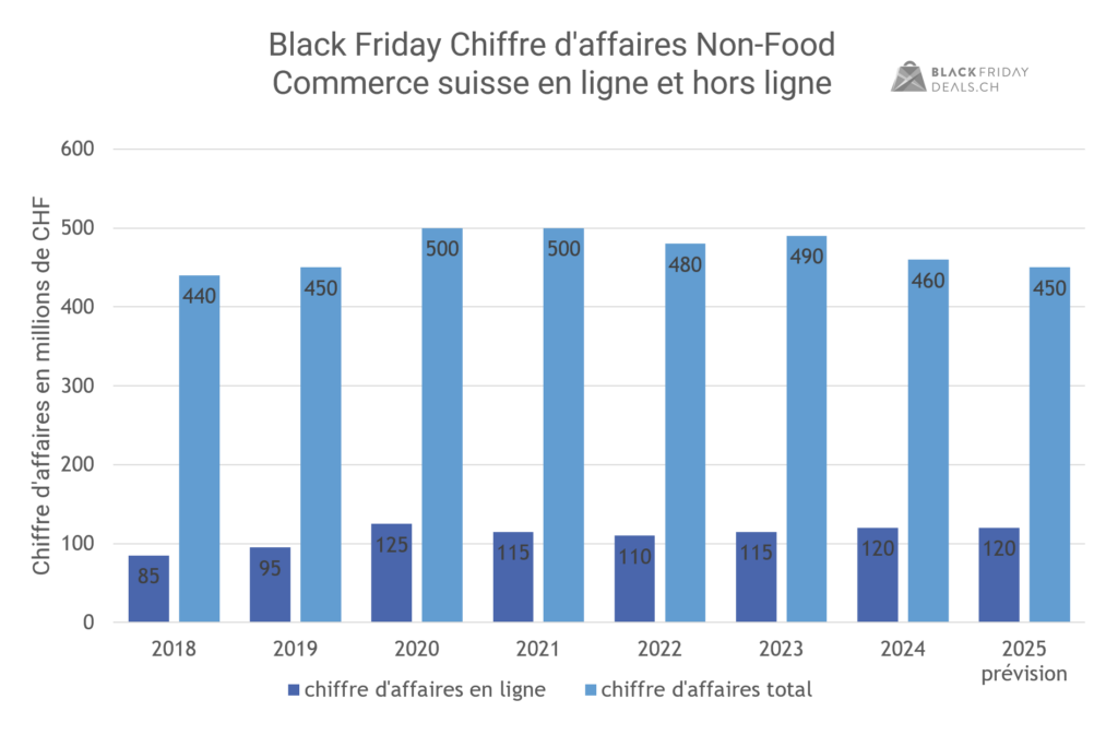Malters, le 25.11.2025 – Vendredi, le Black Friday fêtera son 10e anniversaire en Suisse. Nous prévoyons un chiffre d’affaires de 450 millions de francs dans le commerce de détail non alimentaire suisse. C’est déjà la deuxième année consécutive que le chiffre d’affaires du Black Friday sera en baisse.