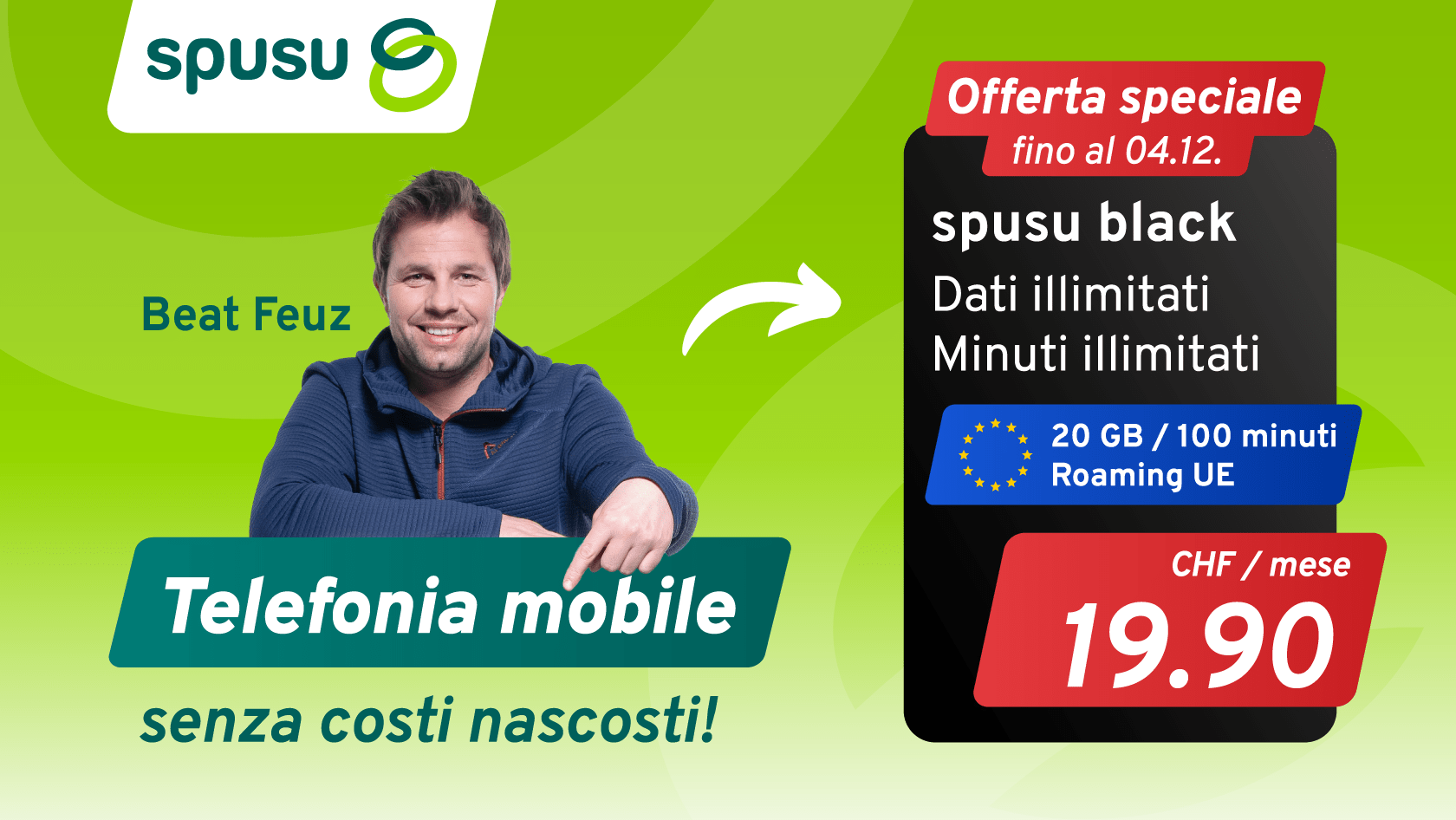 Traffico illimitato in CH e 20 GB in roaming nell’UE a soli CHF 19.90, nessun costo di attivazione, nessuna durata minima di contratto