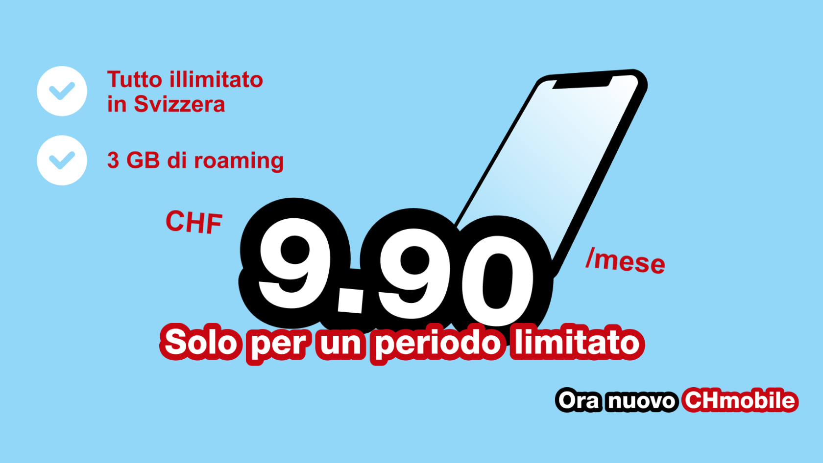 Tutto illimitato in CH + 3 GB per 9.90